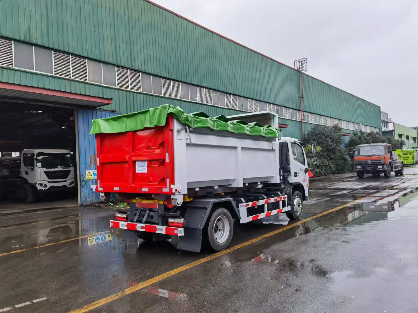 伸縮套臂:上裝部分由伸縮拉臂、主臂油缸、活動(dòng)套臂、套臂油缸、附車架、翻轉(zhuǎn)架、支撐腿、鎖緊架、鎖緊油缸及多路換向閥等組成。拉臂帶伸縮功能,可以通過改變力矩和加大壓力的方式拉升更大的重量,配備垃圾斗后適合裝載建筑垃圾等重物,液壓泵為合肥皖液、多路閥、液壓鎖、平衡閥、行程閥、采用威森博樂,油缸為定制頂尖合資威森博樂品牌。